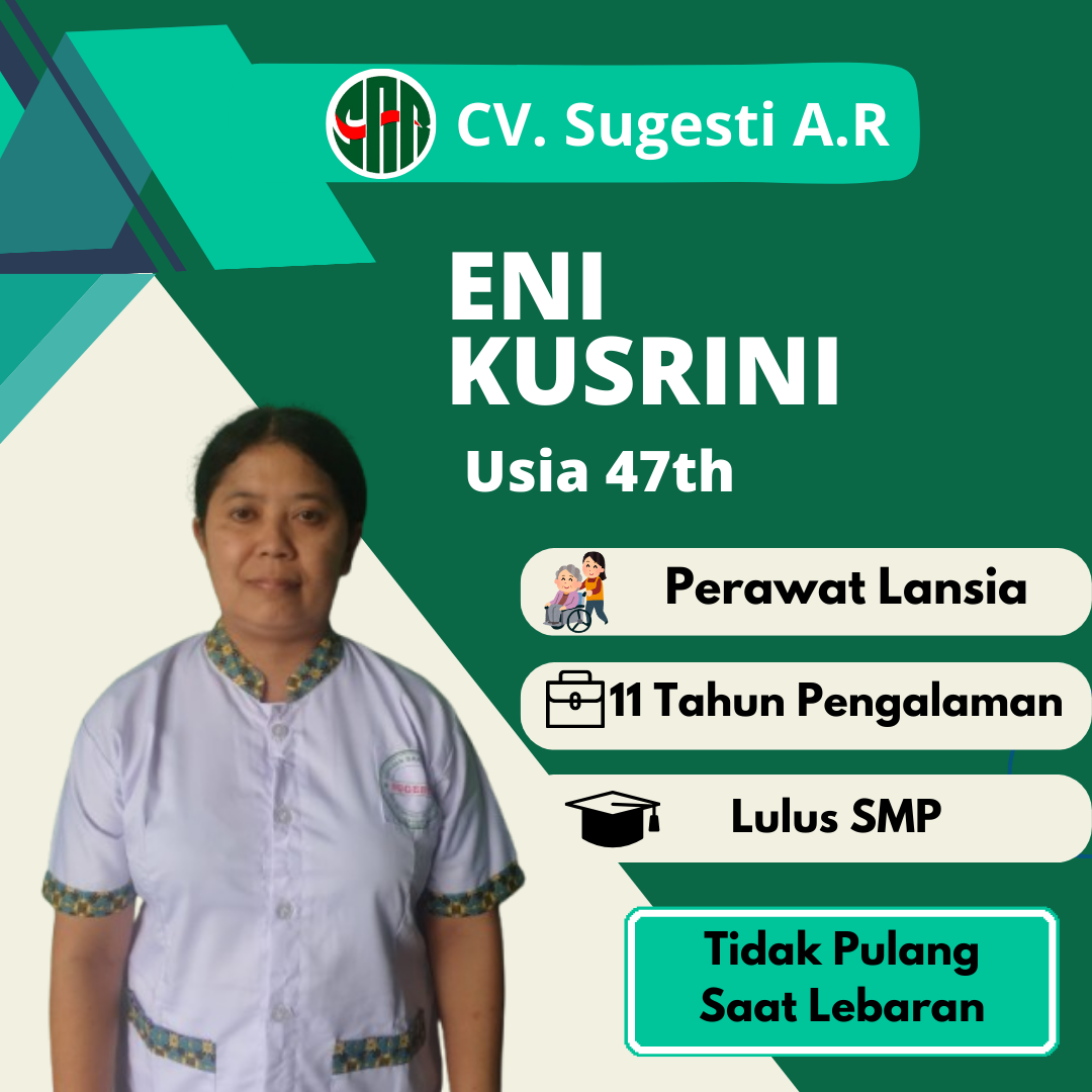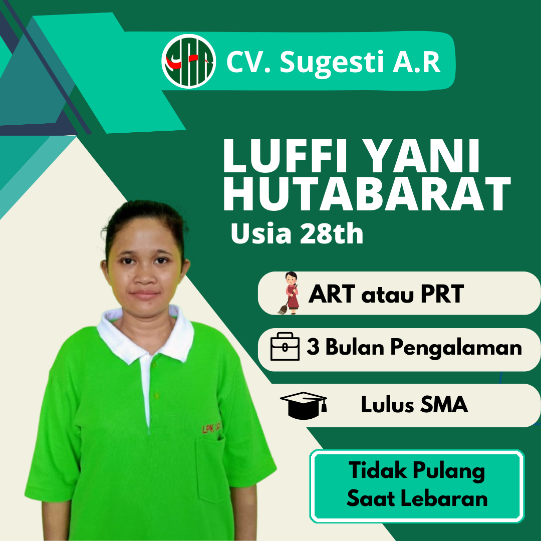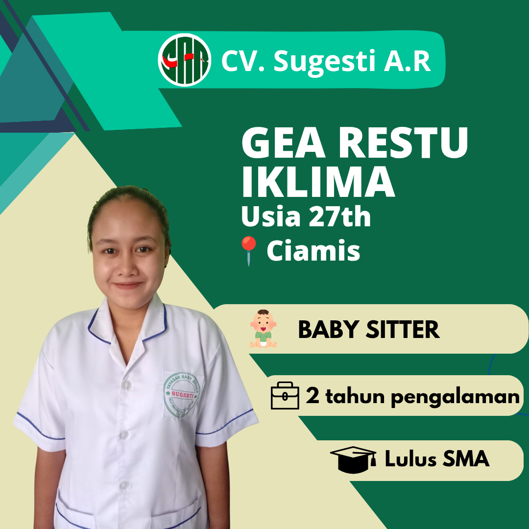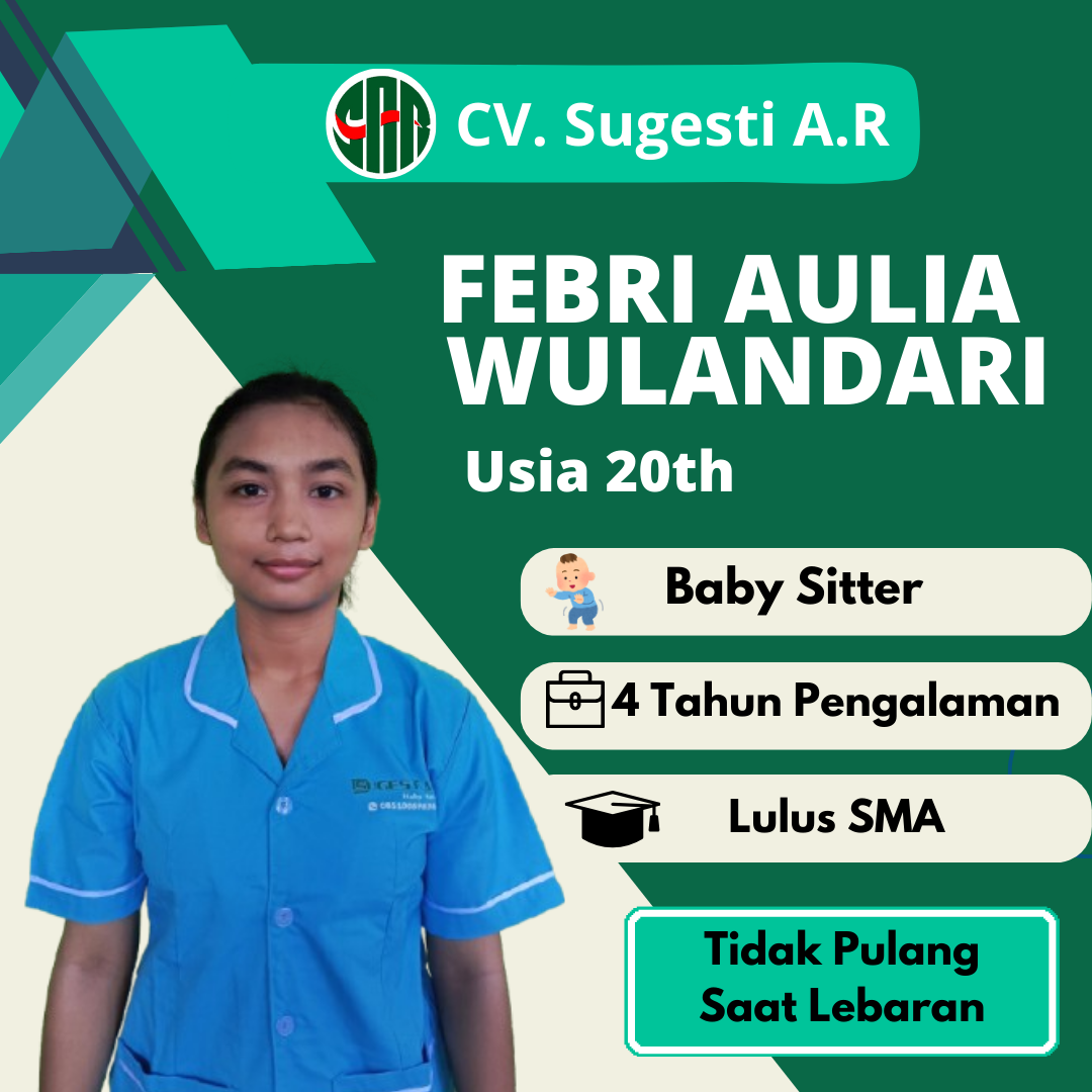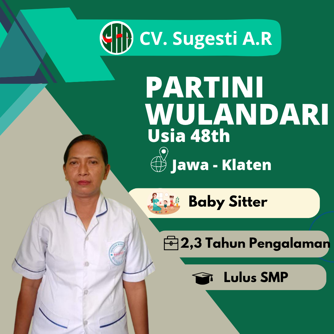 Cv Sugesti AR adalah yayasan atau Lembaga Penempatan Pekerja Rumah Tangga (LPPRT), yang berdiri sejak tahun 2004. Kami lembaga penyalur tenaga kerja (Baby Sitter, Perawat Lansia, dan ART), yang tentunya sudah terverifikasi di KEMNAKER. CV Sugesti AR berharap dapat membantu calon tenaga kerja dalam mendapatkan pekerjaan, dan kami harap dapat membantu Bapak/ Ibu yang membutuhkan jasa Baby Sitter, Perawat Lansia, dan ART.
